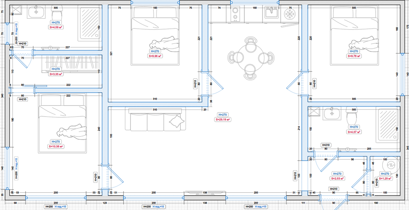 - Приточные клапаны в гостиной и спальнях, принудительная вентиляция в сан. узле и зоне кухни.